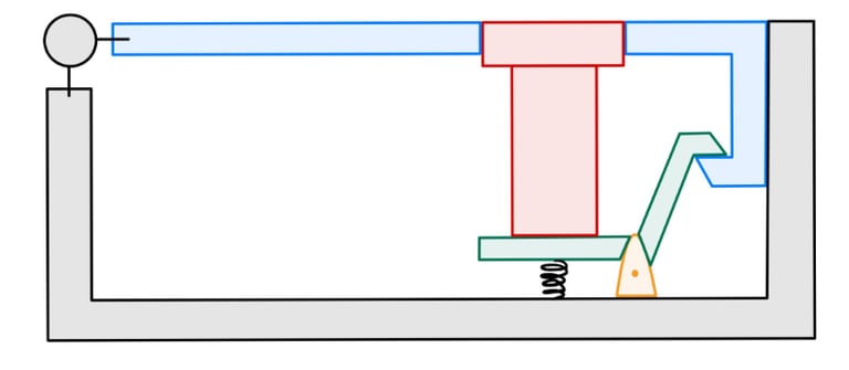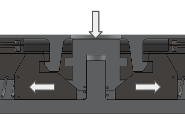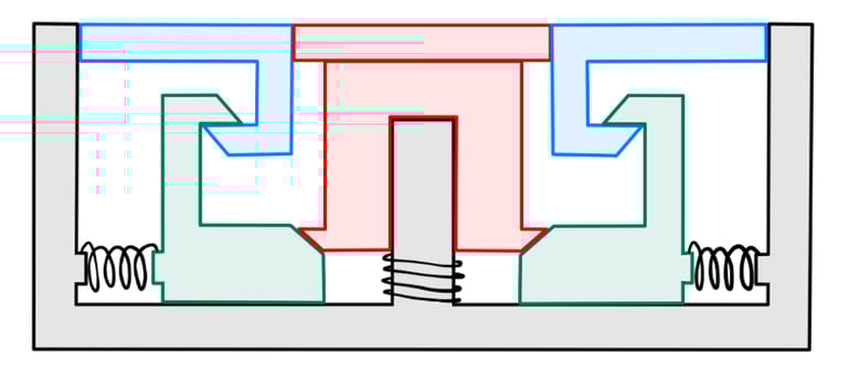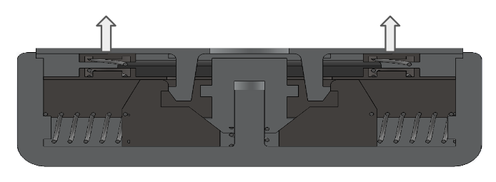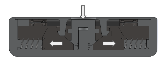 The final design uses a downwards button press push 2 slider blocks apart, causing the lids retention feature to come out of place, releasing the compression springs that push the lid upwards. Compression springs allow the system to push the lid back in place and reset. The slider blocks are slotted within grooves and housed under a secured hood, using locating features to constrain the Y & Z positions.