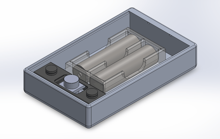 Challenged to design a device that requires a battery door mechanism to house and cover two AA batteries while opening from a downwards button push.