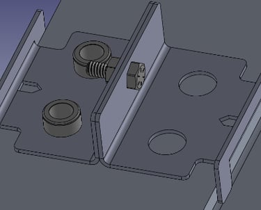 Design 1: Sheet metal bent to shape with a cross and hole stamped out. The crosses allow installer to create notches on the beam, and use a punch to mark create a pilot whole at the centerpoint.