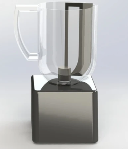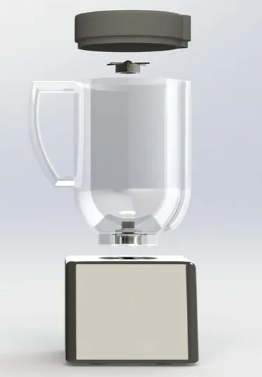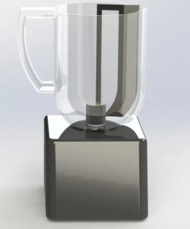 This project focused on developing ideation, industrial design and rendering skills. There are several next steps still required in the design process, with designing a housing connecting the base to body, encasing a sealing gasket. Validation is also required to confirm that the spout does not interefere with food blending, and FEA to verify the squeegee can withstand the forces generated while blending up to 2L of contents.