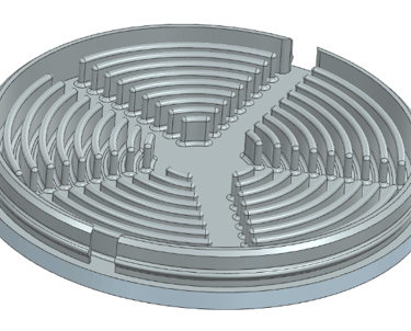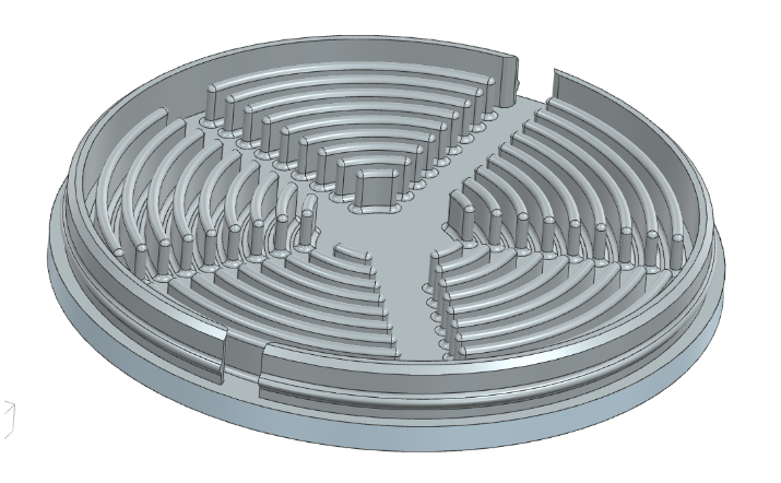 The cable housing incorporates a spiral channel design that allows the cable to press-fit into the grooves while remaining easy to pull out. Five cutout slots enable the cable to adjust to the length required by the user. The housing attaches to the mount using integrated magnets and features an annular snap-fit lid for quick attachment and removal. Draft angles, rounded edges, and uniform wall thickness were incorporated throughout the design to support injection molding