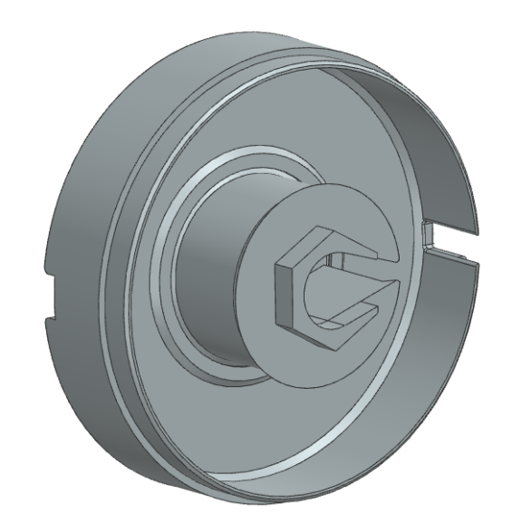 design #2: Rotational winding spool, spinning the outer housing. Not used because the winding requires the exit cable to rotate around the center, creating entanglements outside of housing.