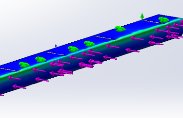 Validation was completed through FEA of the toe guard under code-relevant loading conditions, including a 145 lbf concentrated point load and a 145 lbf distributed area load applied to the vertical wall. The results showed no plastic deformation, confirming the design meets elevator code strength requirements.