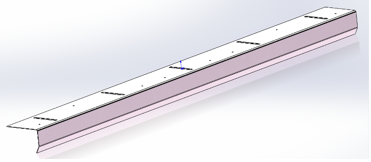 A 16-gauge bent sheet metal component with stamped mounting holes for easy installtion. A 5-inch horizontal surface incorporated for ample clearance during assembly, while a 60 degree bent flange was used instead of a vertical edge to eliminate safety hazards.