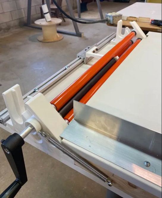 Roller System: Rollers arranged in a triangular configuration to maintain constant 3 point contact, preventing slipping during winding.